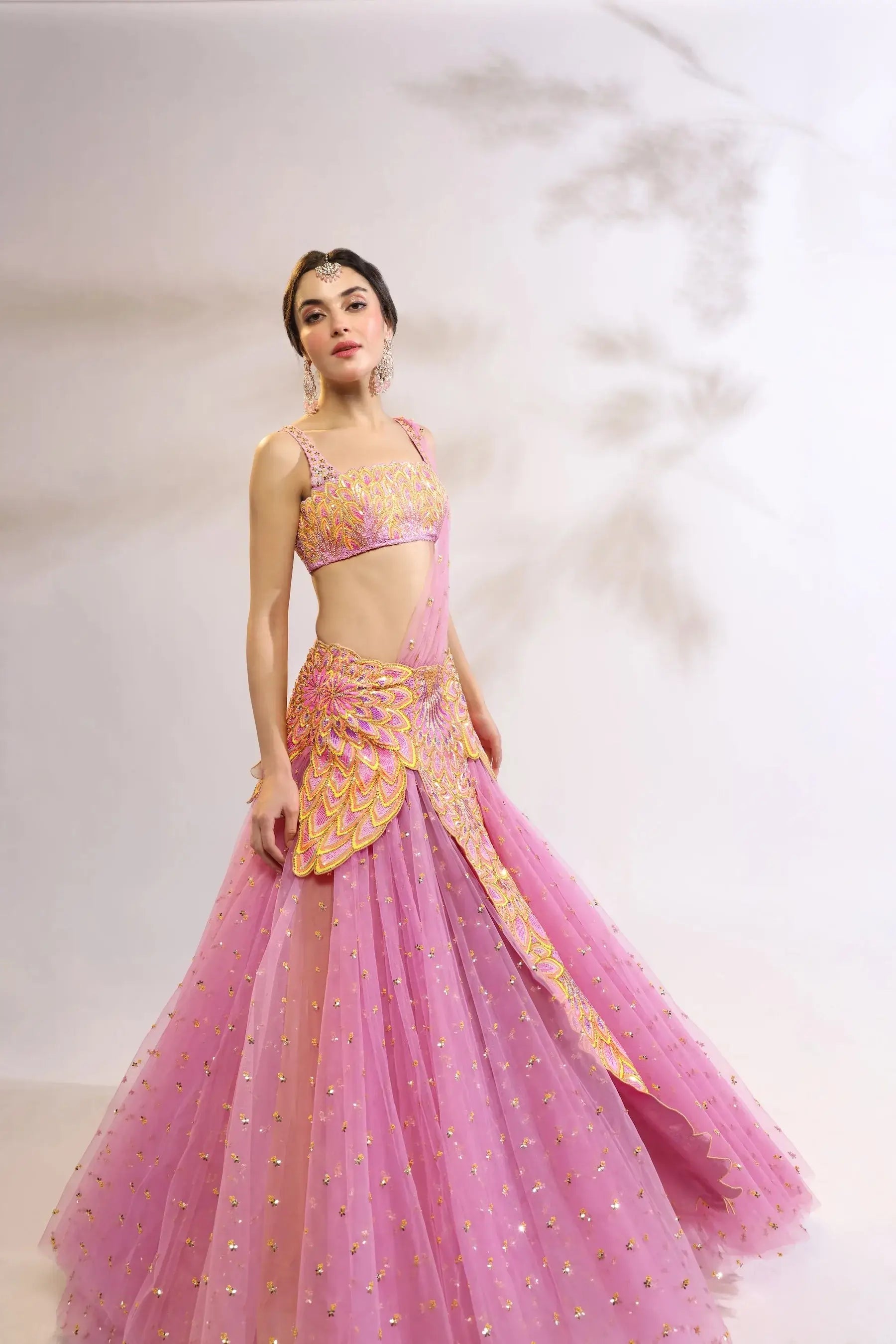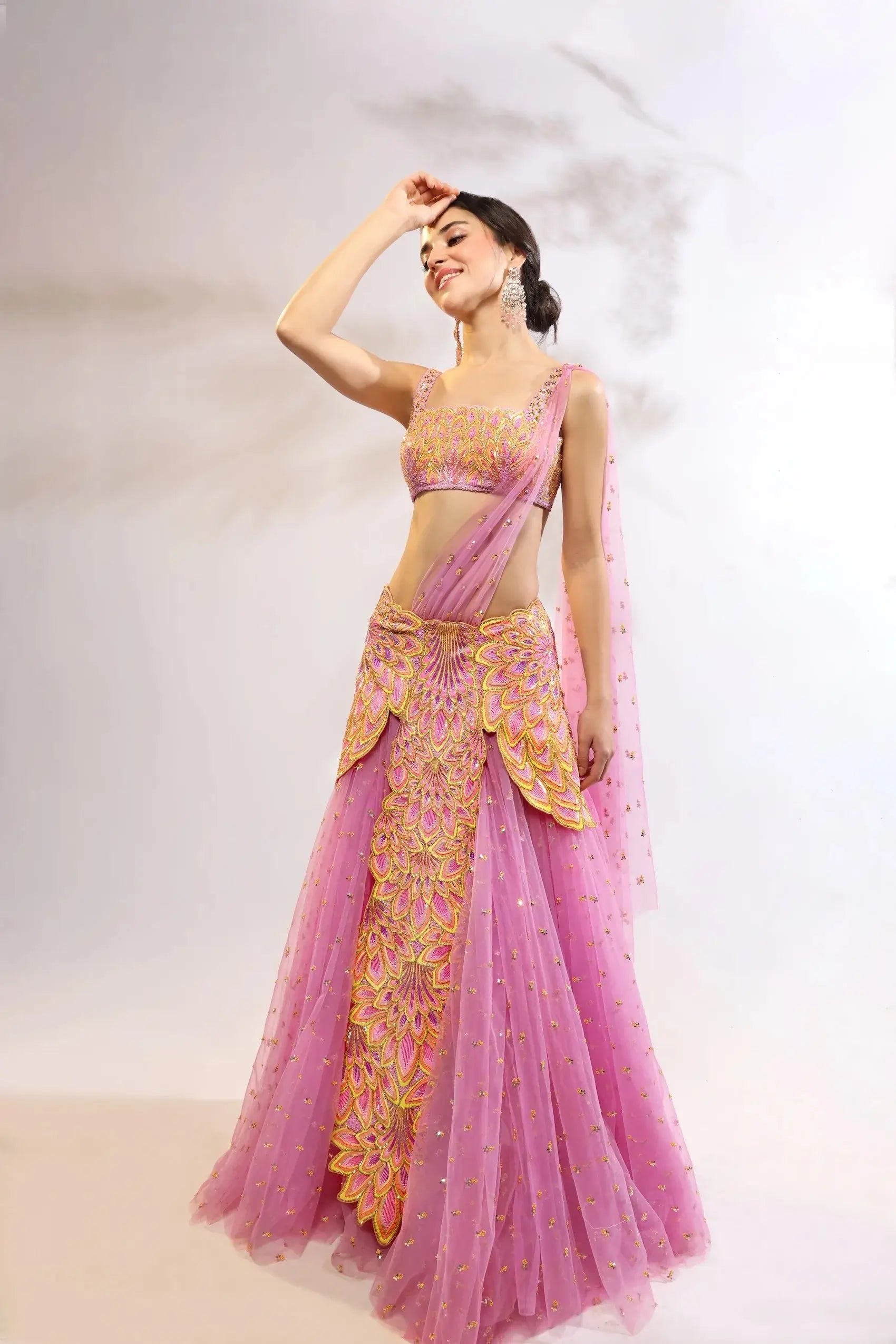Rooted in nature’s artistry, the Mohhar Lotus Bloom Flap Saree is beauty in its rawest form - where every petal and drape capture’s the poetry of a blooming lotus.